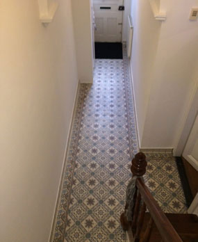 Diese Antike Jugendstil Bodenfliesen lehen in die Halle von die Familie Hollands.